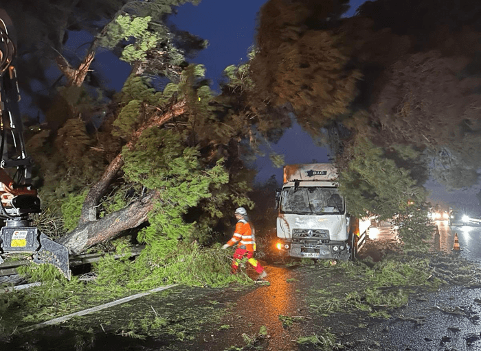 Arbre abattu par la tempête Nils à Salses-le-Château (66) ce jeudi 12 février 2026 - photo Jean-Sébastien Gantou