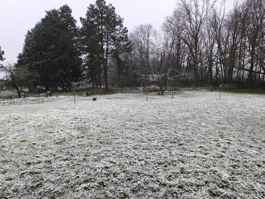 Neige tenant au sol à Availles (86) le matin du dimanche 16 mars 2025 - via infoclimat.fr