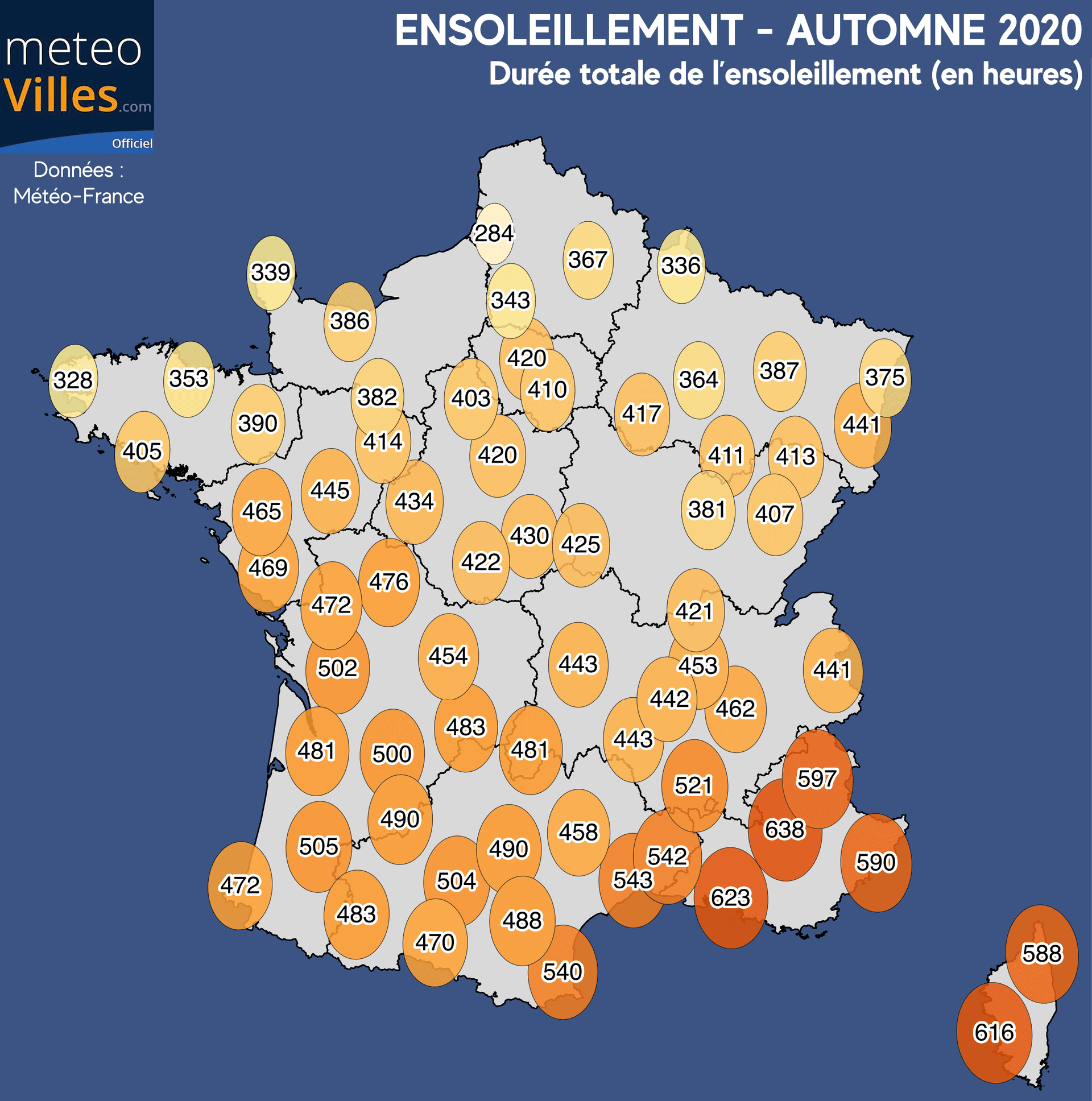 Retrouvez-ci-dessous les détails de ces 3 mois d’automne au niveau de l’ensoleillement :