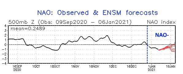 Indice d'oscillation nord-Atlantique du 9 septembre au 6 janvier 2021 - via NOAA