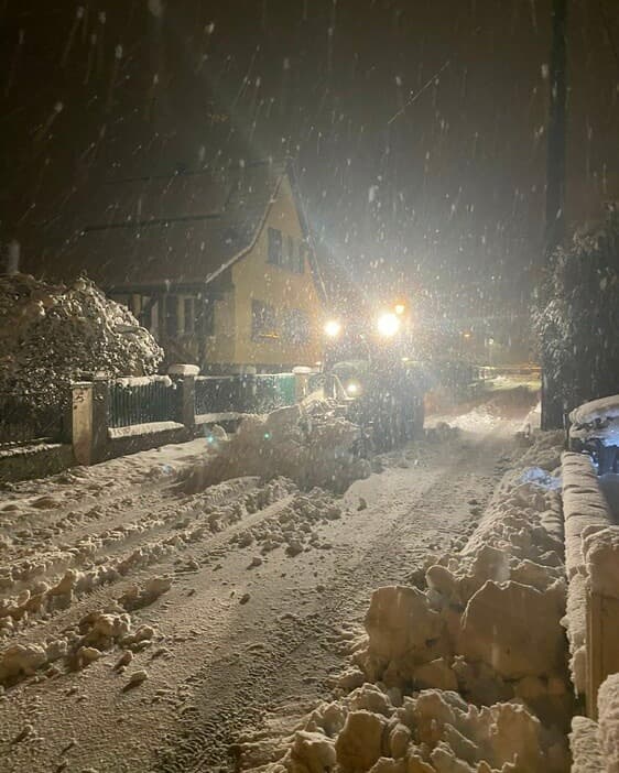 Plus de 40cm de neige à Munster (68) au petit matin du 15 janvier - Photographie via twitter : @chasseur_dorage