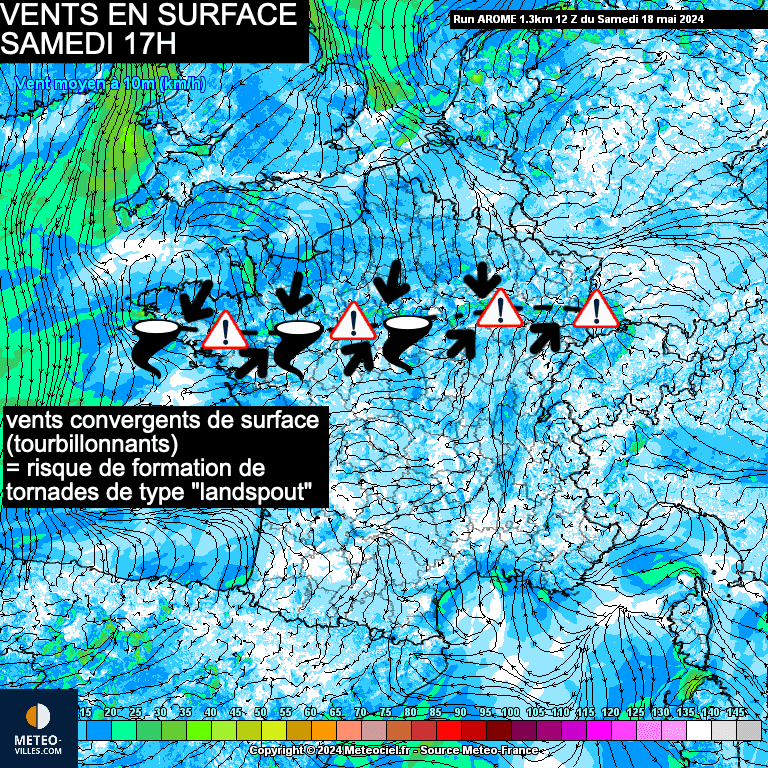 Formation de tornades et trombes terrestres les 17 et 18 mai 2024 en France