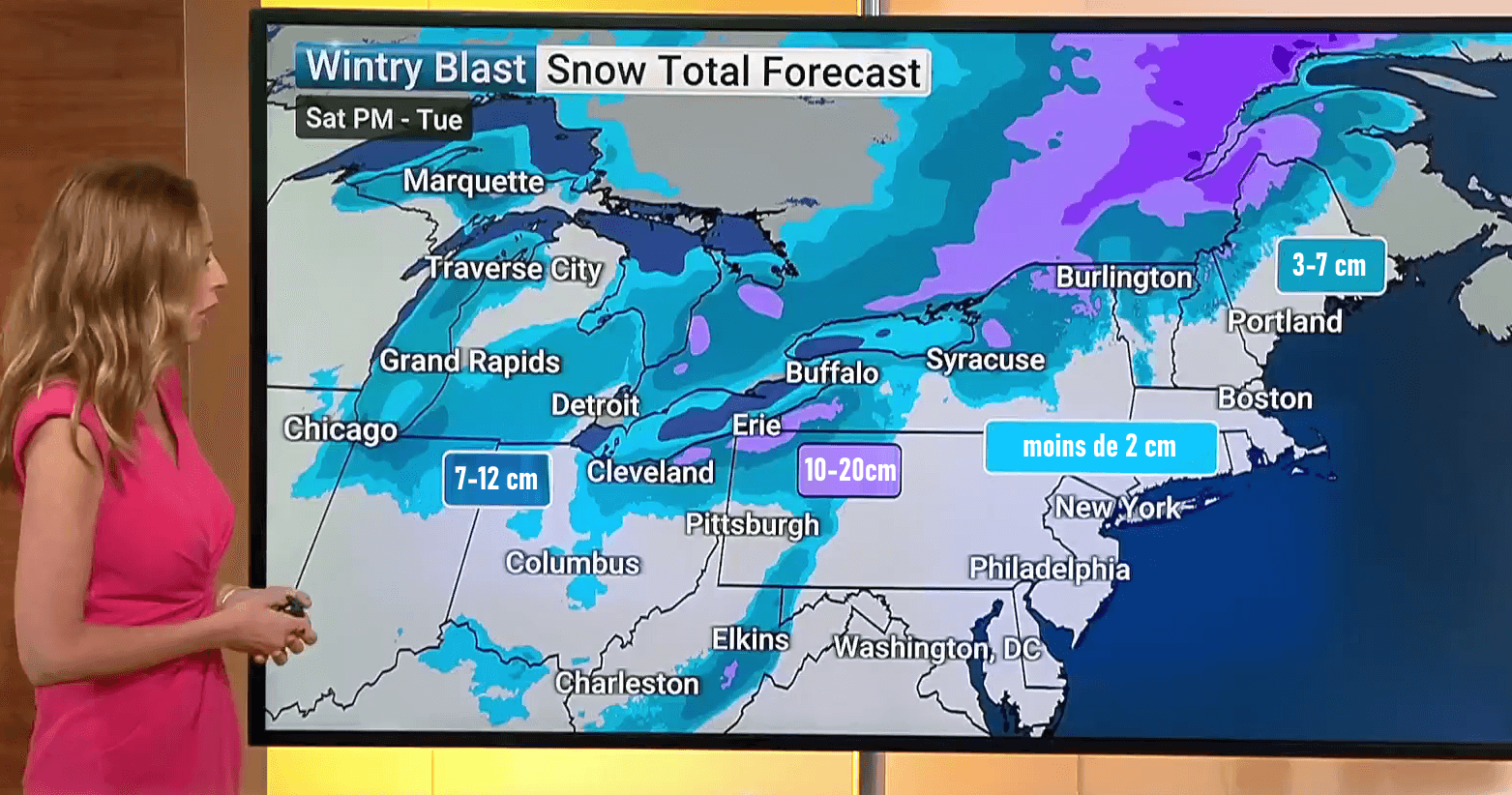 Neige prévue du samedi 8 au mardi 11 novembre 2025 sur le nord-est des USA - The Weather Channel
