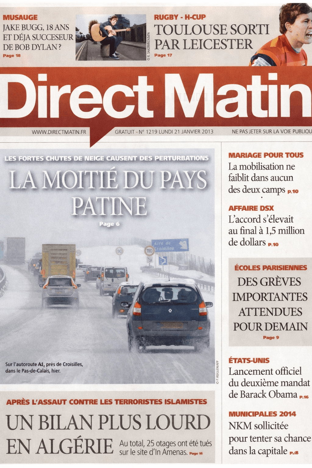 Coupure de presse relatant de la neige du 20 janvier 2013 – Archives Météo-Villes