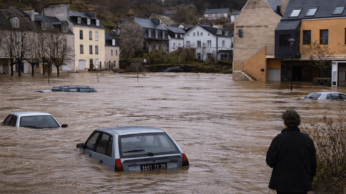 Un peu plus tôt, c'est la ville de Quimper qui fut parmi les premières à subir les crues. Le Steïr, affluent du fleuve Odet, a débordé dans une partie du centre-ville. Il faut dire que les cumuls de précipitations sont remarquables dans le secteur, qui a reçu une soixantaine de millimètres de pluie en 24 heures et qui dépasse la barre des 200 mm depuis le début du mois de janvier 2026 ! C'est la répétition de ces épisodes pluvieux qui cause la saturation des sols et le débordement des cours d'eau.