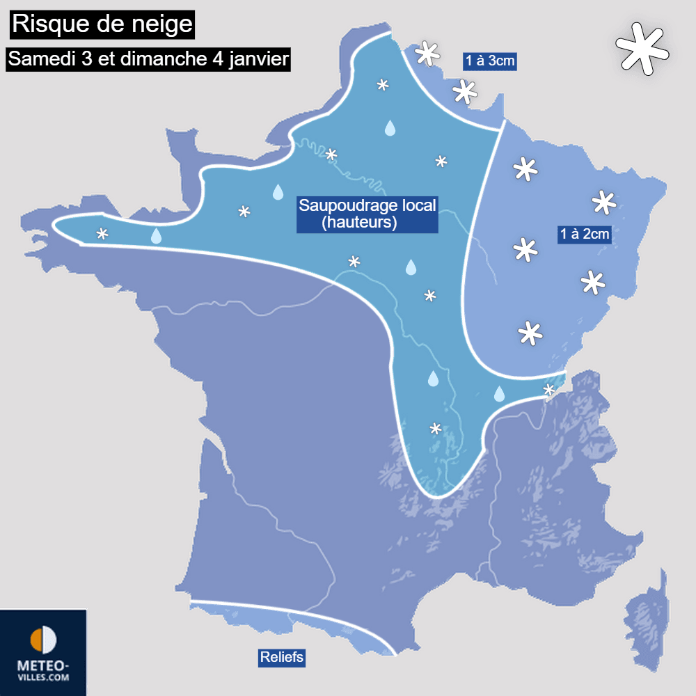 Risque de neige pour le week-end des 3 et 4 janvier 2026 sur la France - Météo-Villes