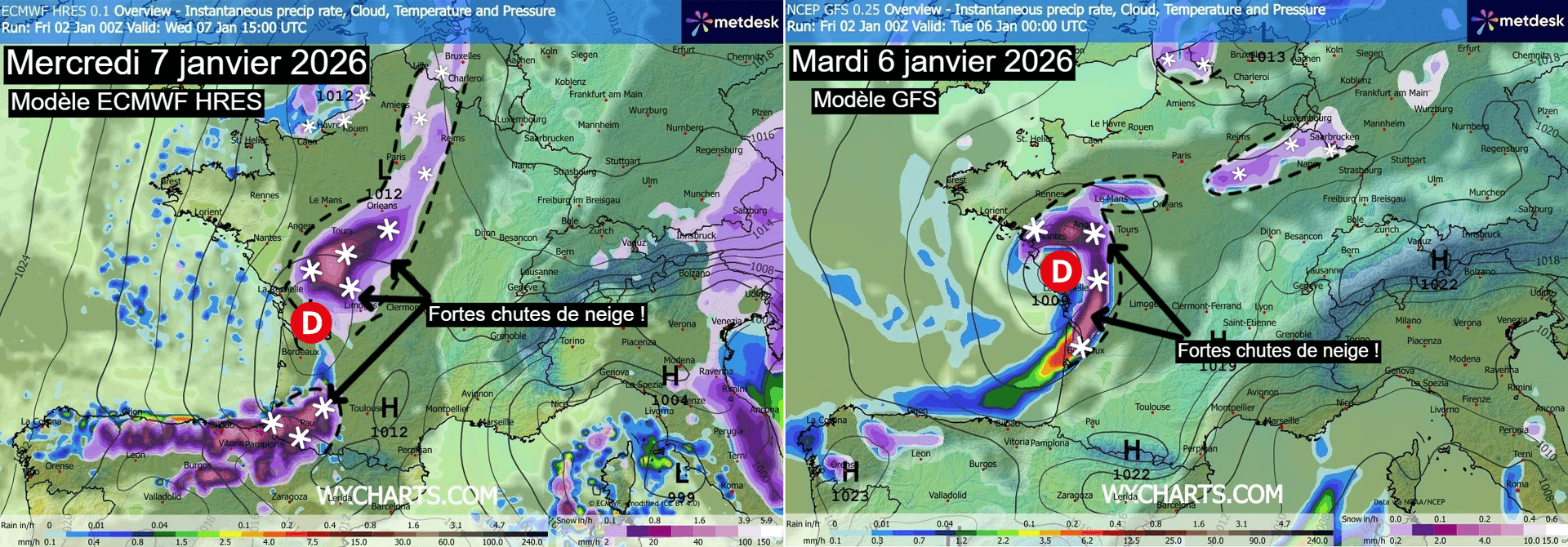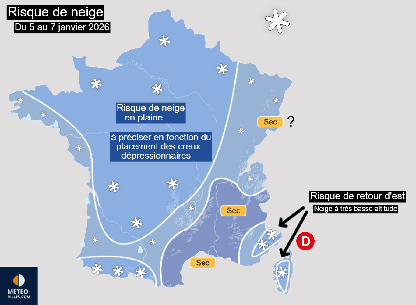 Risque de neige sur la France entre lundi 5 et mercredi 7 janvier 2026 – Météo-Villes