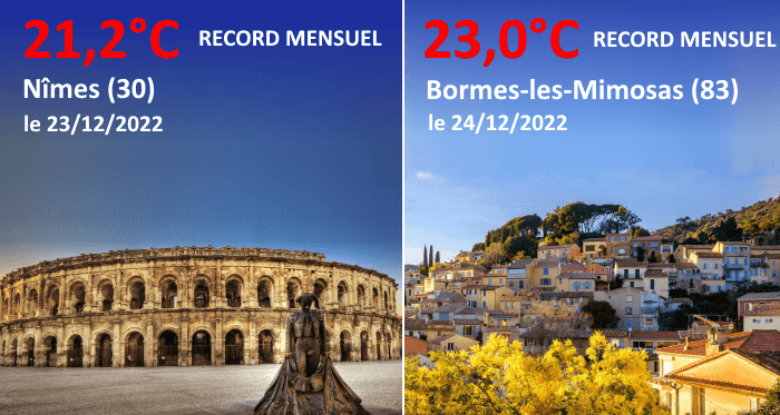 Douceur record à Nîmes (30) et Bormes-les-Mimosas les 23 et 24 décembre 2022