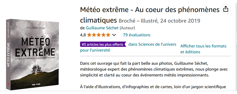 Page de vente liée à mon livre Météo Extrême sur le site Amazon - Amazon