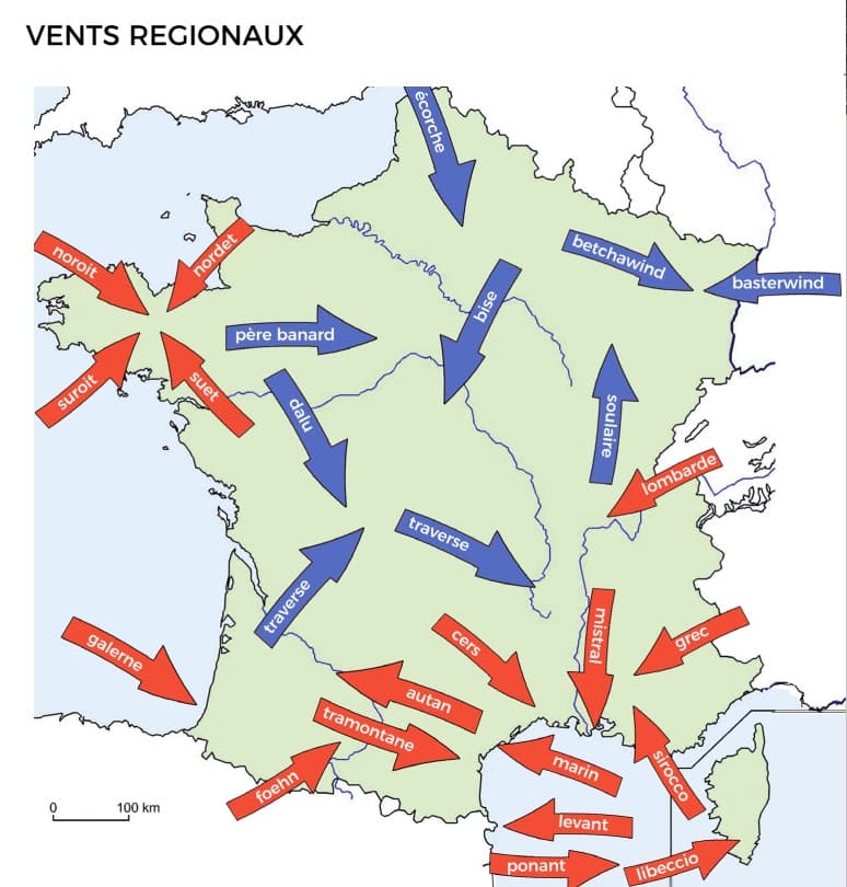 Les vents régionaux et leur appellation en France – Tiré du livre METEO EXTREME p116