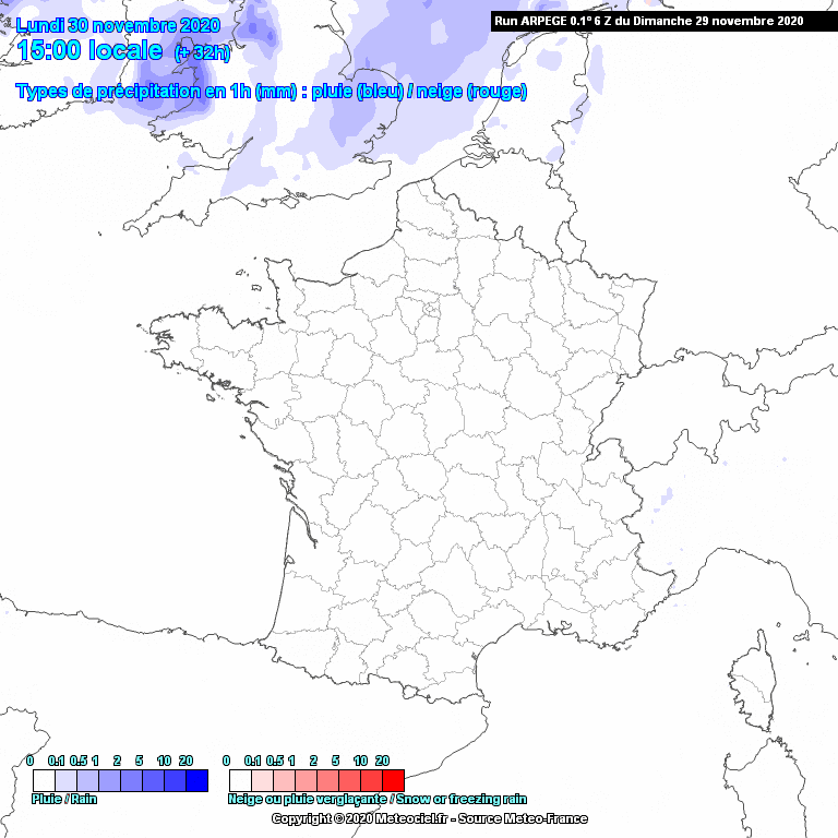 Type de précipitation modélisée ce mardi 1er décembre 2020 - Modèle Arpège via Météociel