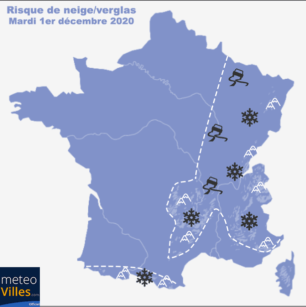 Risque de neige ou de verglas - mardi 1er décembre 2020 - Météo-Villes