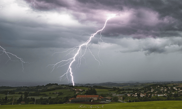 Ces orages ont été marqués par une importante activité électrique, dès le matin sur l'Aquitaine. Notons que des cellules très actives ont également circulé en dehors du sud-ouest, notamment entre le sud de l'Auvergne et le nord-ouest de Rhône-Alpes. La photo ci-dessous a été prise dans le département de la Loire, au passage d'un fort orage en cours d'après-midi.