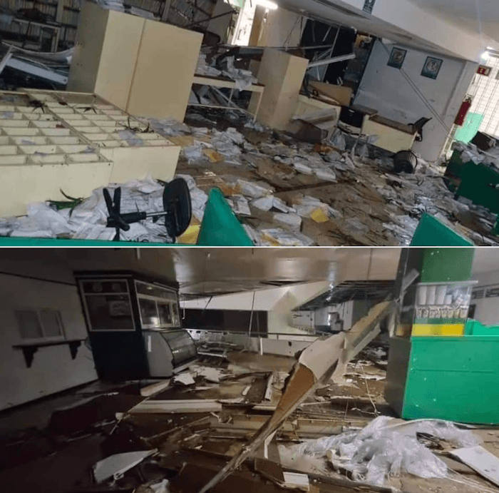 Centre commercial d'Acapulco avant et après l'ouragan Otis ce 25 octobre 2023 – via Twitter