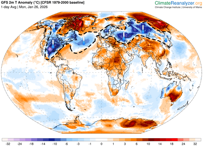 Anomalies de températures dans le monde ce 26 janvier 2026 – ClimateReanalyzer