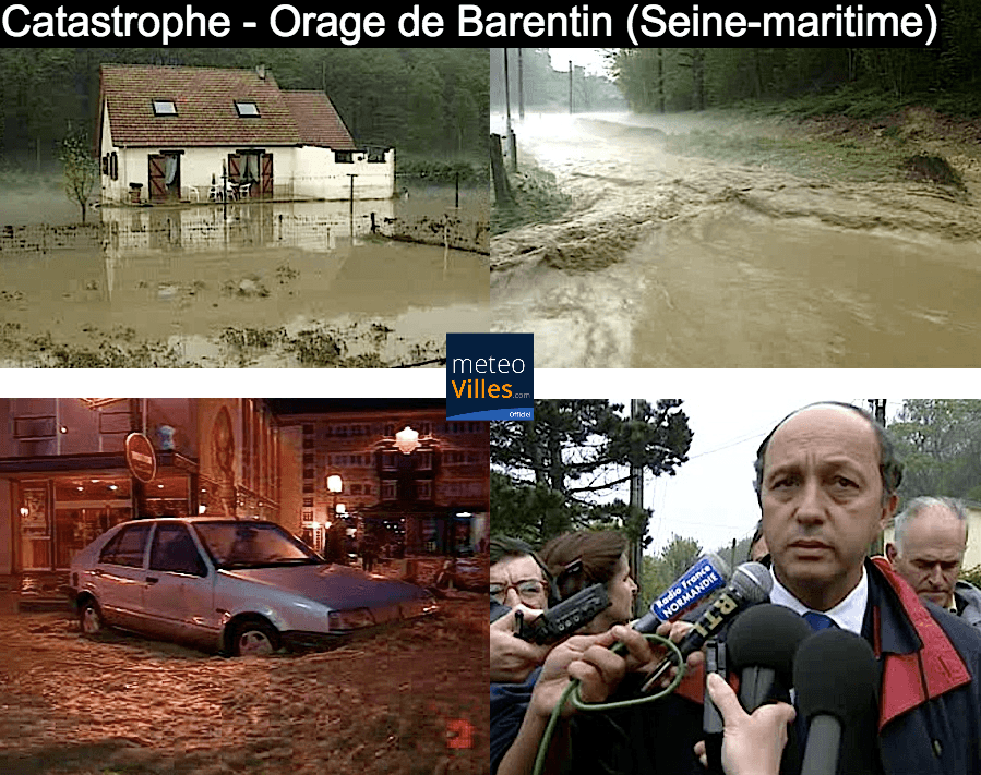 Le mois de mai 2000 avait également été le témoin d'orages diluviens et d'inondations parfois importantes. Le 10 mai 2000, la ville de Barentin - en Seine-Maritime - subit une véritable catastrophe sous un orage déversant environ 80 mm de pluie en à peine plus d'une heure ! Un torrent de boue envahit subitement les rues du centre-ville, qui sont complètement dévastées. Un véhicule est emporté par les flot, causant la mort de sa conductrice. Les dégâts sont considérables et de nombreuses habitations endommagées.