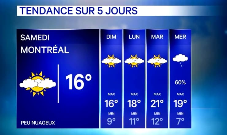 Prévisions météo à Montréal du samedi 7 au mercredi 11 novembre 2020 - via TVA