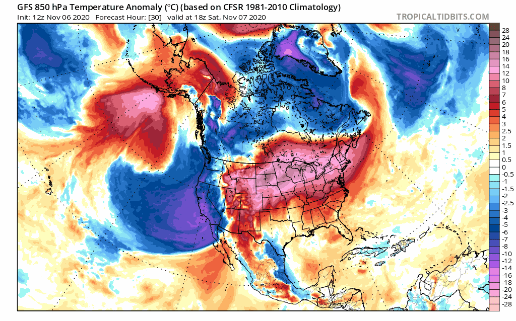 Anomalie de la masse d'air en Amérique du Nord du 7 au 12 novembre 2020 - via tropicaltidbits.com