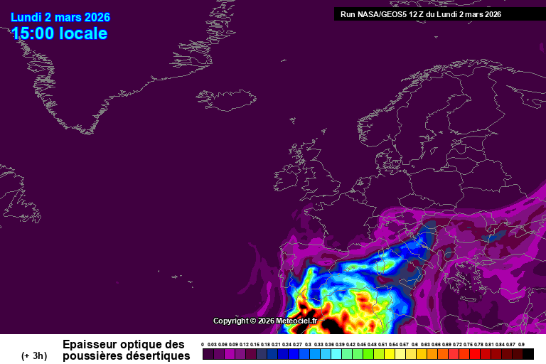 D’après les simulations concernant l’évolution de ce nuage de poussières d’ici la fin de la semaine, croisées avec les prévisions de précipitations, on peut considérer que l’ensemble du territoire français sera touché, à des degrés divers et sous des formes différentes, par ces poussières sahariennes.
