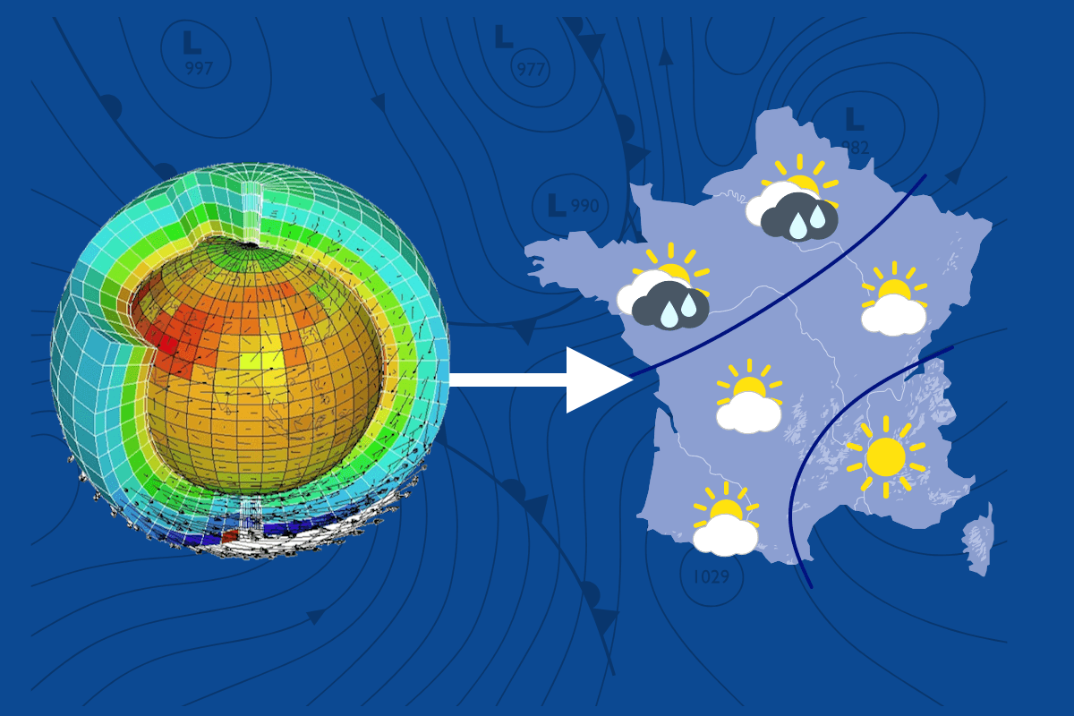 Avant de pouvoir faire de la prévision, il faut d'abord récolter un maximum d'observations du temps à la surface du globe. Celles-ci sont recueillies par les nombreuses stations implantées sur terre, par les bouées météo en mer mais aussi par les images satellite et les images radar, donnant tout un tas d'informations en temps réel sur les températures, la pression, la vitesse du vent, la couverture nuageuse ou encore les précipitations. Une fois ces données collectées, elles sont centralisées et injectées dans les modèles de prévision - des sortes d'immenses ordinateurs (appelés super-calculateurs) qui vont pouvoir simuler l'atmosphère des heures et jours à venir en fonction des observations des dernières heures et jours.