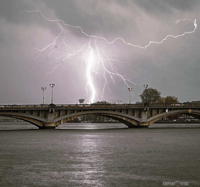 Parmi ces milliers d'éclairs, certains furent de jolis impacts de foudre (éclair nuage-sol), comme le montre cet impressionnant cliché pris à Bayonne dans les Pyrénées-Atlantiques en fin d'après-midi. Outre l'activité électrique ponctuellement soutenue, des pluies intenses, de la petite grêle et quelques bourrasques de vent ont été observées.