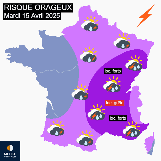 Carte du risque orageux pour ce mardi 15 avril 2025 - Météo Villes