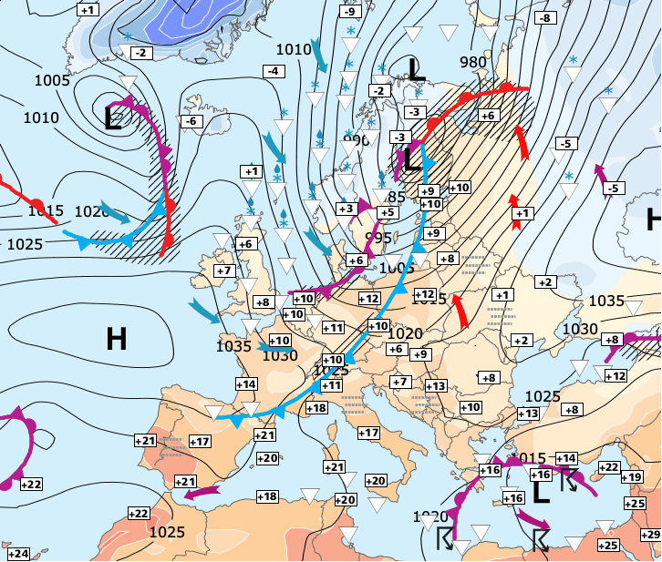 + Comme il s’agit d’air froid polaire d’origine maritime des Spitzberg, l’ensemble de la Scandinavie, l’Allemagne le Benelux et tout le nord-est de la France sont situés aux premières loges.