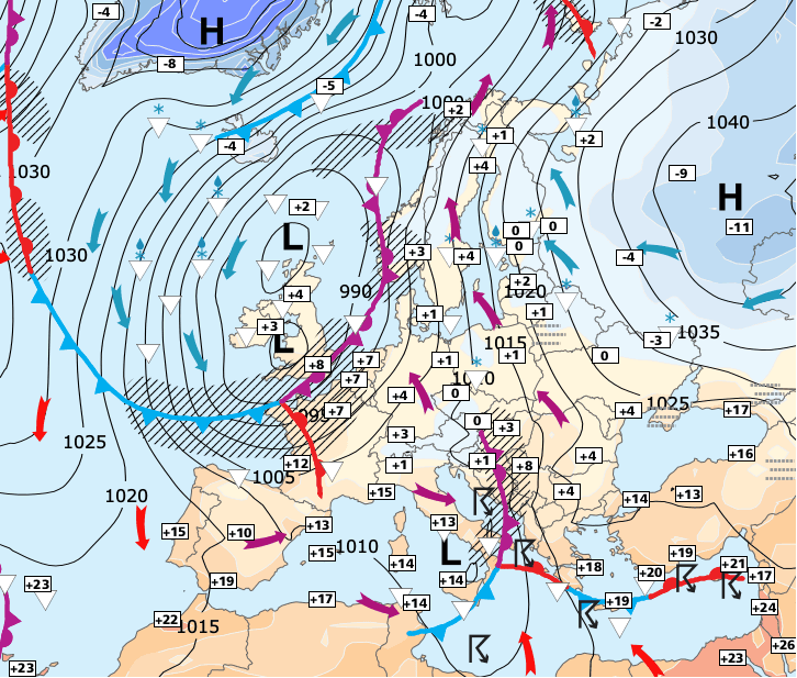 + Une profonde dépression (nommée Wenke par les allemands) est en train de se creuser sur le Sud-est de l’Angleterre, englobant toute la France !