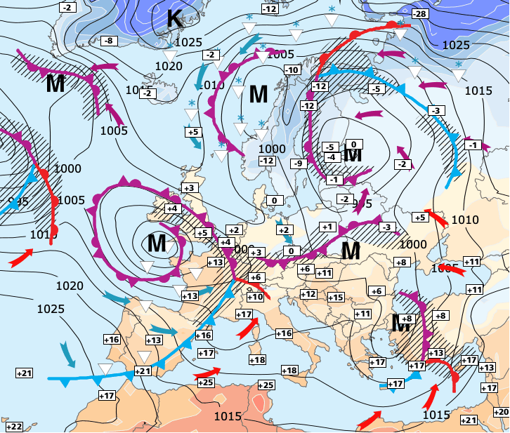 + Les conditions météo  resteront très perturbées dans les prochains jours car la France dans une zone de conflit entre l'air froid polaire qui recouvre le Nord de l'Europe (notamment la Scandinavie) et la douceur Ibérique qui remonte par vagues successives - lire notre article complet sur les raisons de cette agitation ici >>>