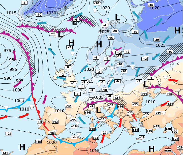 + Toutefois, la journée de samedi redeviendra très stable car l’anticyclone norvégien étendra son influence sur presque tout le pays.