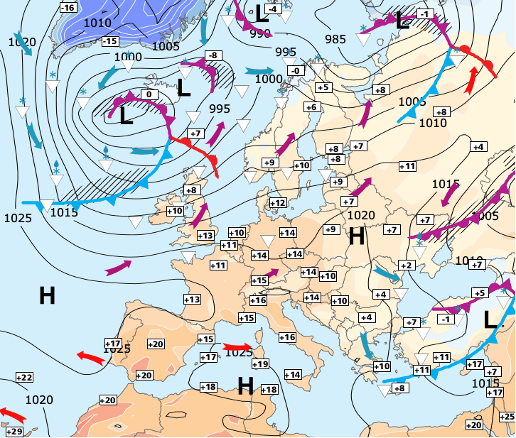 + Ce classique courant atlantique persistera jusqu’à samedi et un deuxième front plus actif que le précédent balayera une bonne partie nord de la France entre vendredi midi et samedi matin avec un peu de pluie.