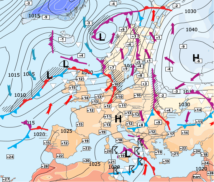 + Jeudi, un front froid peu actif traversera la France d’ouest en est et les températures baisseront.