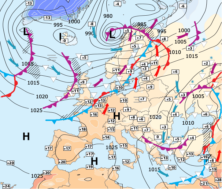 + À partir de mardi, une importante descente froide devrait envahir le Nord-ouest de l’Europe.  Pour le moment, il est difficile de savoir si le Nord-ouest de la France sera affecté dès mardi soir ou un peu plus tard. En tout cas, la fin de la semaine prochaine devrait être plus fraîche - et tous les scénarios restent encore possibles.