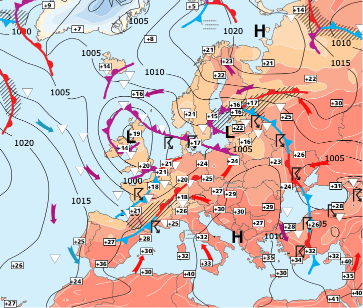 + La chaleur restera sans excès dans un premier temps et aucune période caniculaire n'est en vue pour le moment. En revanche, après une petite accalmie, la chaleur va de nouveau s’accentuer entre le Sud-est de l’Espagne, le Sud de l’Italie et la Grèce !!