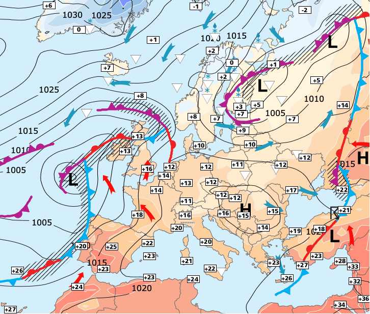 + L’épisode de temps froid et calme se termine car l’anticyclone s'éloigne vers l’Europe centrale.