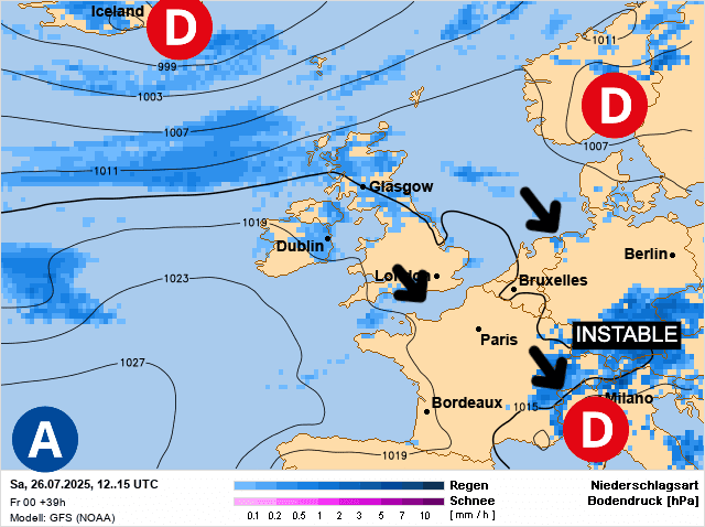 Carte de prévisions d'europe du Samedi 26 juillet 2025