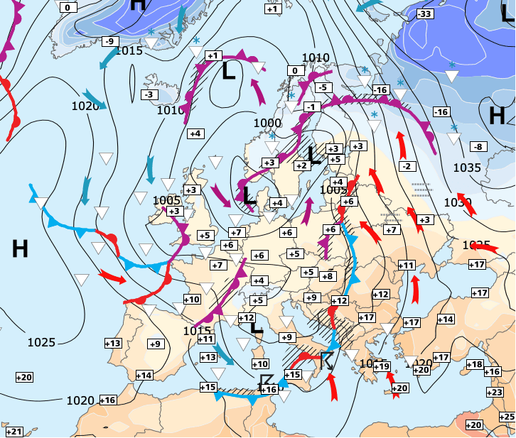 + Pour le moment, la situation reste dépressionnaire avec de l’air froid atténué  par les perturbations océaniques.
