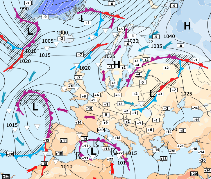 + Dans l’immédiat, la situation va s’améliorer près de la Méditerranée avec le décalage de la dépression vers la Sicile.